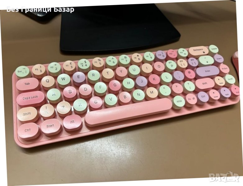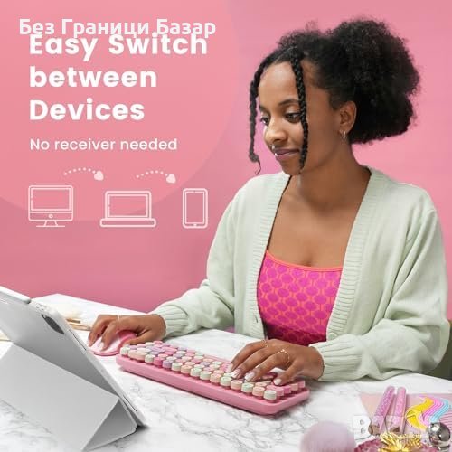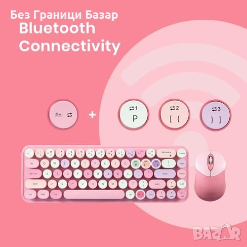 Нова Мини Клавиатура и Мишка Розова, Съвместима с Windows/Android/iOS