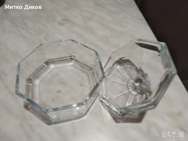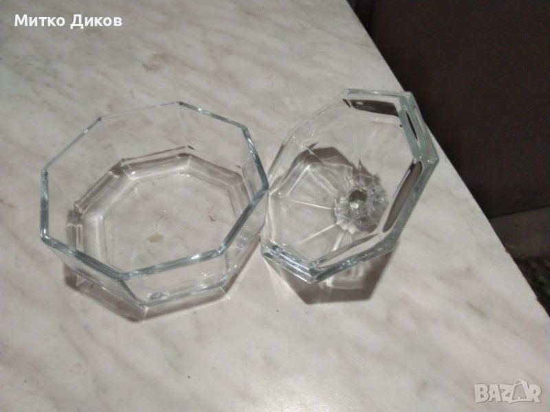 Захарница нова Н-100мм и 110мм-тежка е и при чукане капака звънти-може и да е кристална-изпращам по еконт-по спиди