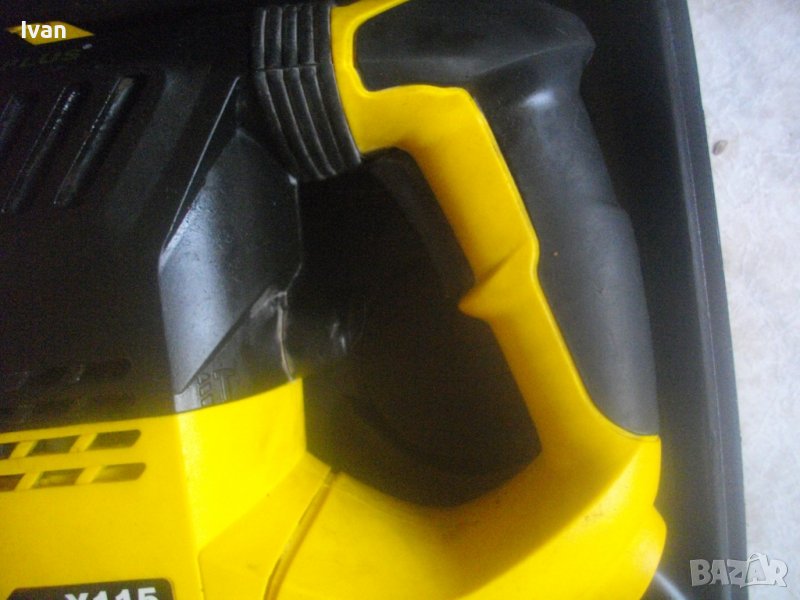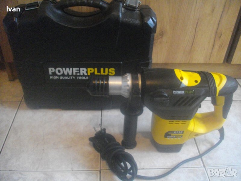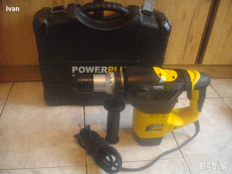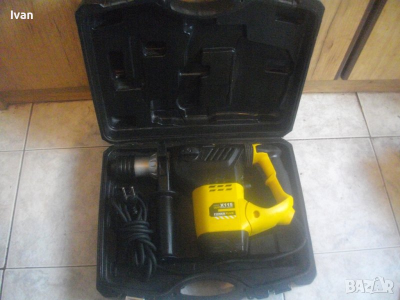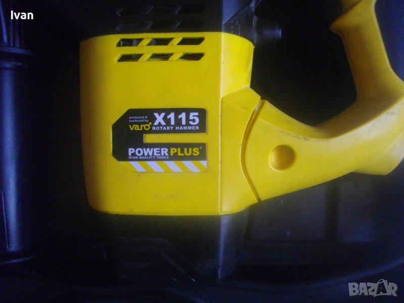ОПИСАНИЕ на перфоратор къртач. Цена 89 лв. Предлага се за части или за ремонт някой да си го оправи. Марка и модел - Power Plus X115, модел Rotary Hammer. Производство - оригинално белгийско - Made in Belgium. Производител - концерна VARO. Машината е почти нова, с много запазен външен вид и техн.състояние - липсват четкодържачите с четките. Състяние на ротор - неизвестно. Мощност на мотора - 1500 вата, скорост 730 об/мин. Голям, масивен корпус. Патронник голям, захват SDS Plus.Наличие на оригиналната предна дръжка. Гумирана мембрана на дръжката и корпуса за обиране на вирациите при работа. Гумирани нехлъзгащи се покрития на дръжката при захвата на ръката. Функции - ударна функция и пробиване комбинирано. 2 ключа за превключване на функции. Куфар оригинален голям с врадени вложки, с леко разкъсано покритие от едната страна. Тегло само на машината - 6,2 кг. Тегло на машина с куфар - 8,0 кг. Цена на машина с куфара - 89 лв. Твърда цена/беез коментар. Моля ,не ме занимавайте с цени, различни от обявената. Машината се продава само цяла, с куфара, не се вадят части от нея.