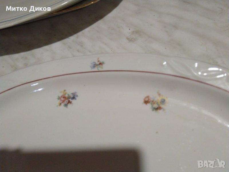 Порцеланово плато поднос от соца на СИП Стойко Иванов Пеев Белослав 390х260мм → Обява 43990886