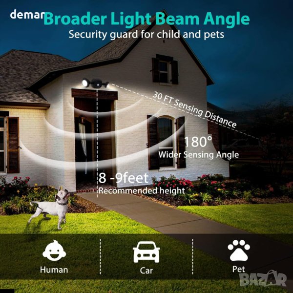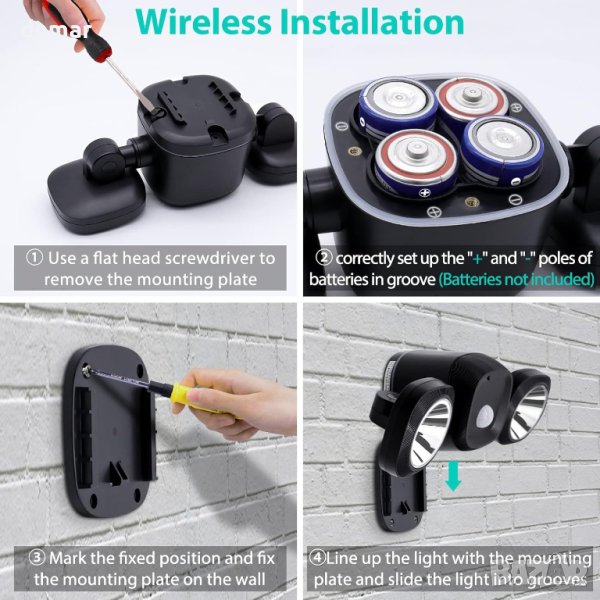 Охранителните светлини, захранвани с батерии, са проектирани с високочувствителен сензор за движение, предлагащ ъгъл на откриване от 180° и обхват от 30 фута, способни да откриват движение от хора, автомобили и животни при условия на слаба светлина, за да подобрят сигурността и бдителността през нощта. Тези енергийно ефективни LED прожектори са оборудвани със сензори за движение и фотоклетки, захранвани от 4 D-клетъчни батерии, способни да издържат до 180 дни с 40 ежедневни активации и излъчват 480 лумена. Това представлява значително спестяване на енергия, намалявайки консумацията с 80% в сравнение с традиционните лампи с нажежаема жичка, като по този начин предлага спестяване на разходи и удобство. За разлика от слънчевите или жичните алтернативи, тези безжични светлини, работещи с батерии, осигуряват гъвкавост в местата за инсталиране, незасегнати от времето или наличността на електричество. Изработени от издръжлив ABS материал и водоустойчиви с рейтинг IP65, те са подходящи за широк спектър от вътрешни и външни настройки, включително стени, гаражи и градини. Инсталирането е лесно, не изисква сложно окабеляване, с всички необходими винтове и основа за бърза настройка, което прави тези лампи универсално и безпроблемно решение за осветление за различни среди.