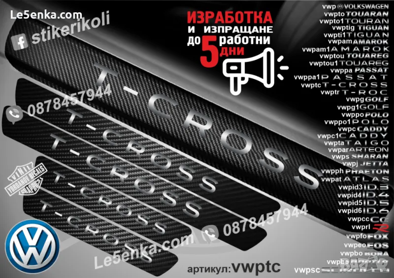 ПРАГОВЕ карбон VOLKSWAGEN TAIGO фолио стикери vwpta → Обява 43992104