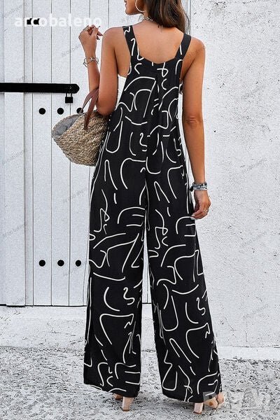 Дамски гащеризон с елегантен абстрактен принт, 4цвята