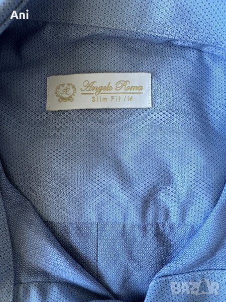 Синя официална риза Angelo Roma. Носена 3-4 часа, без никакви следи от употреба и жълти петна под мишниците.
