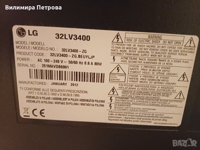 Телевизор LG 32LV3400 LED → Обява 44000639