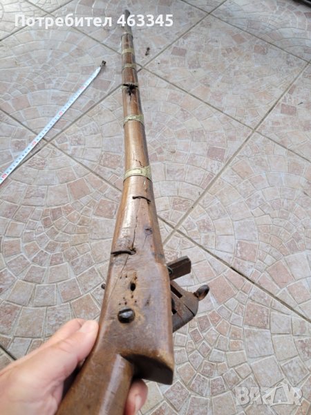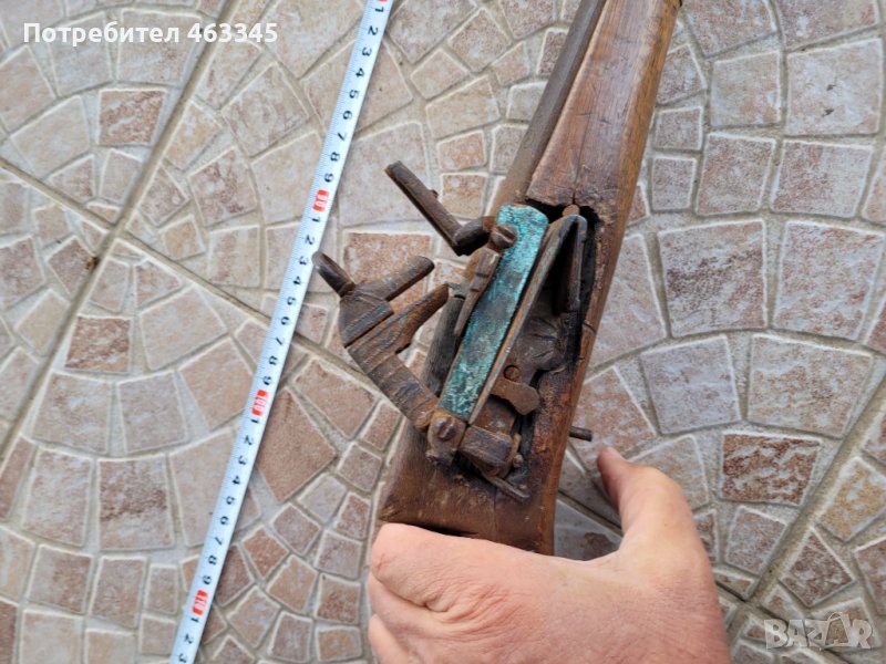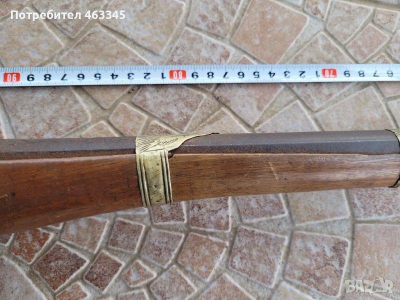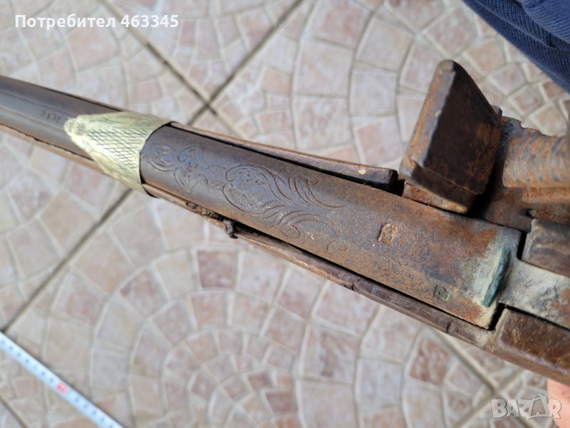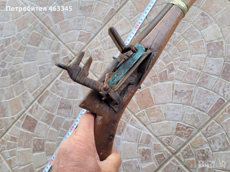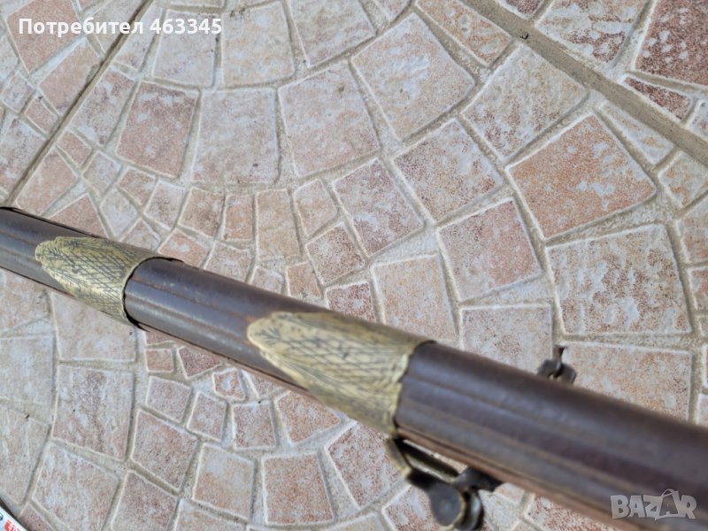 Старинно османско шишане - от дългите. Хубава цев. Механизмът работи- запъва и в двете положения и спуска. Много здрава бойна пружина. Механизмът се държи лошо в дървенията защото липсва винт. Дървенията няма дървояд. Оригинални гривни с много добра украса. Ръждата навсякъде е повърхностна. Непочиствана. 100% оригинал