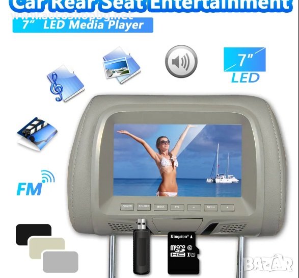 За монтаж на подглавника / монитора задължително трябва да се закупи USB видеоизход-39.90лв Налични в сив, черен и бежов цвят!