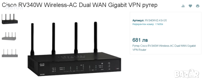 Cisco RV 340W Dual-WAN Wireless-AC Gigabit VPN Router, снимка 1 - Рутери - 44004585 Cisco RV 340W Dual-WAN Wireless-AC Gigabit VPN Router, снимка 2 - Рутери - 44004585 Cisco RV 340W Dual-WAN Wireless-AC Gigabit VPN Router, снимка 3 - Рутери - 44004585 Cisco RV 340W Dual-WAN Wireless-AC Gigabit VPN Router, снимка 4 - Рутери - 44004585 Cisco RV 340W Dual-WAN Wireless-AC Gigabit VPN Router, снимка 5 - Рутери - 44004585 1/5