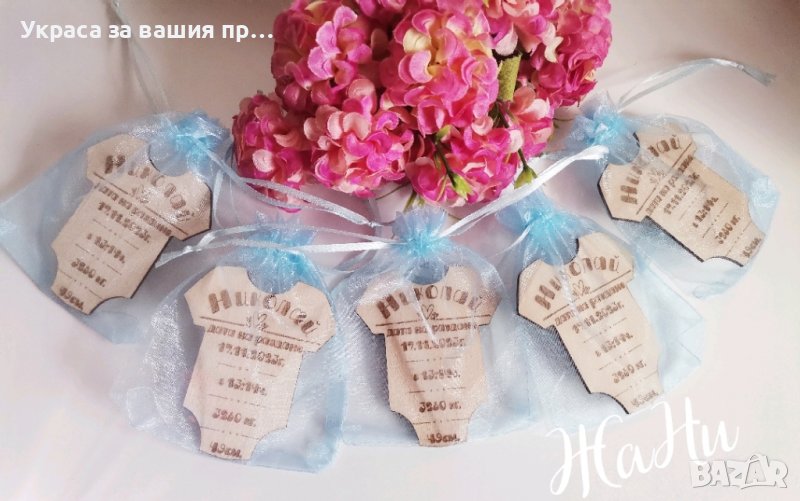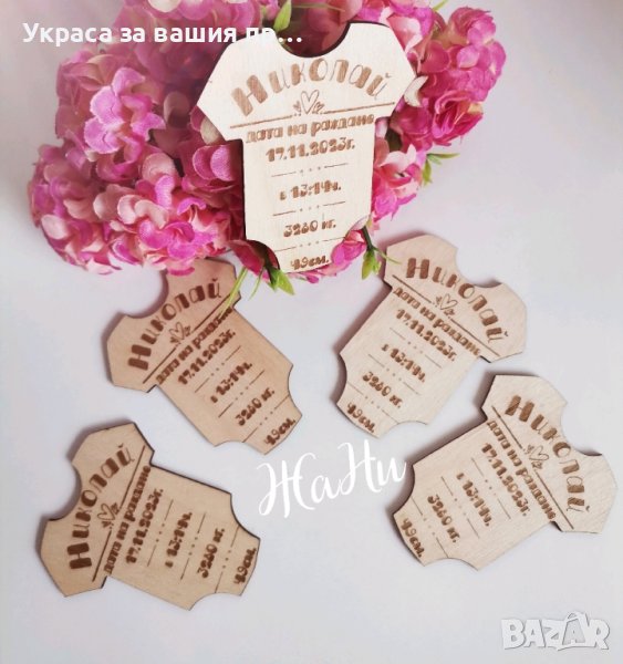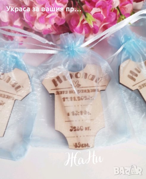 Магнит боди за хладилник с бебешка визитка подаръчета за гостите на погача. → Обява 44005065