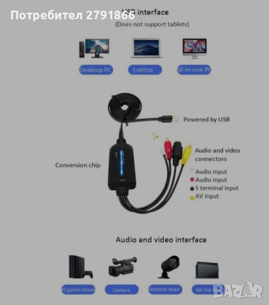 USB 2.0 конвертор на устройство с карта за заснемане на видео, конвертиране на VHS в цифрово редактиране и запазване на аналогово видео в цифрови файлове за Mac OSОтносно този артикулВсичко в едно: Заснемайте видео в универсалния цифров формат H.264 – работи за Windows Live Movie Maker и YouTube. Прехвърлете ги на DVD и други цифрови формати, като AVI, MPEG2, MPEG4 и MP3 (само аудио), за да запазите вашите винилови записи в цифров формат.Запазете ценните си спомени: Прехвърлете/заснемете видео и аудио от почти всеки аналогов видео източник (VHS/VCR/Hi8/DVD/TV BOX) на вашия Mac (с изключение на MAC OS 10.14 и по-нова версия) или компютър (XP/Vista/Win7/ Win8 /Win10.32bit и 64bit)【Удобен за редактиране】: Създавайте изчистени видеоклипове с инструменти от професионален клас за намаляване на видео шума, стабилизиране на видео шока, корекция на цветовете, ефекти на преход и много други. Разделете видео на множество DVD за споделяне или архивиранеПрехвърляйте видео незабавно и лесно: Можете да конвертирате вашите VHS, Hi8, V8, VCR касети, домашни филми, игри или други аналогови видео източници, които поддържат композитни RCA или S-Video изходи, в цифров формат на вашия Mac или PC. След това можете да използвате DVD запис и софтуер за запис.Поддържа всички видео формати: DVD+/-R/RW, DVD+/-VR и DVD-Video. Кандидатстване за интернет конференция, мрежова среща. Поддържа NTSC, PAL видео формат.