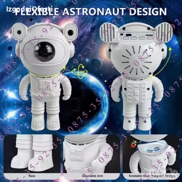 тагове: звезден проектор, детски космически проектор, звезден проектор астронавт, звезден астронавт подарък за Коледа, светлинен проектор подарък за дете, лед звезден прожектор, лед проектор астронавт, лед звезден проектор подарък за рожден ден, лед проектор за деца