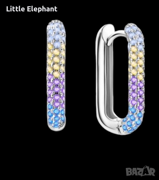 Дизайнерски сребърни висящи обеци издължени халки,coloured с цветни кристали/нови → Обява 44010130