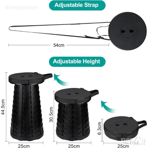 Обхватът на регулиране височината на табуретката е от 7 см до 46 см, можете да настроите височината според вашите нужди. Регулирането я прави подходяща за възрастни и деца. Също така е чудесен подарък за всеки, който търси сгъваем преносим стол.