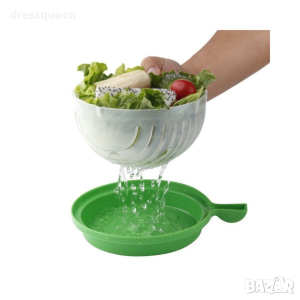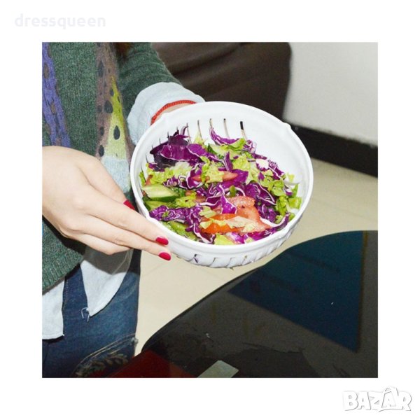Купа за бързо рязане на салати прави приготвянето на салата по-лесно от всякога. Цялото удобство без бъркотията и безпорядъка на дъската за рязане. Плодовете и зеленчукови салати вече ще са вашата стихия.