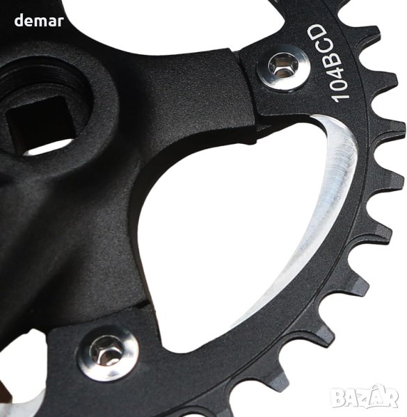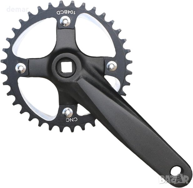 MTB манивела с избор от 165 мм дължина на манивела, включваща издръжлива 6061 T6 топлинно обработена квадратна конусна манивела. Едноскоростното верижно колело 7075 с тесни и широки зъби предотвратява изпускане на веригата, а болтовете на манивела са включени за лесен монтаж. Със 104 mm BCD дизайн с висока интензивност и съвместимост с едноскоростни колена, той пасва перфектно на MTB. Пакетът включва едноскоростно тясно-широко верижно колело (32T) и всички необходими компоненти. Този колянов вал е предназначен за квадратни заострени отвори, с препоръчителен размер на долната скоба от 110 мм/110,5 мм (не е включен), което го прави подходящ за планински велосипеди, градски велосипеди и др. Вземете всичко необходимо в един комплект.