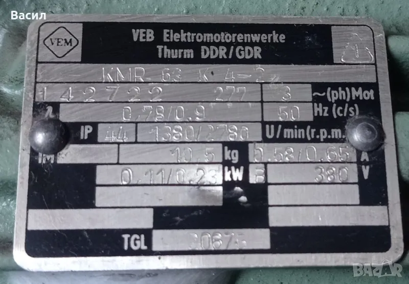 трифазен електромотор с две скорости и редуктор → Обява 44015845