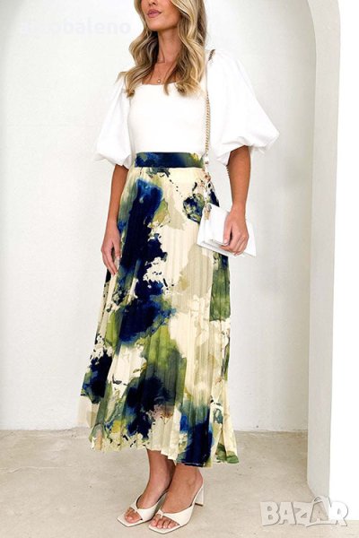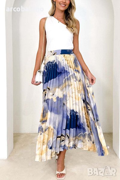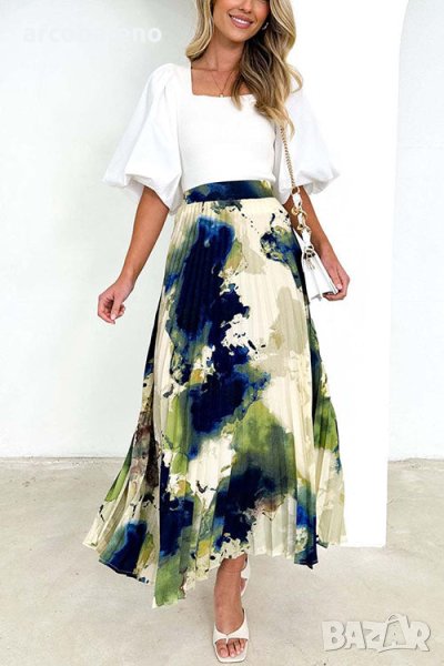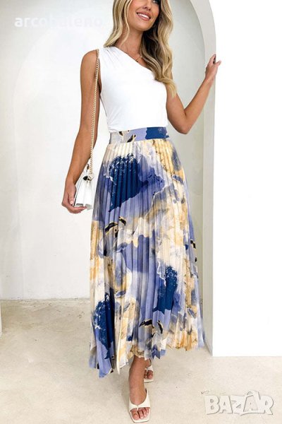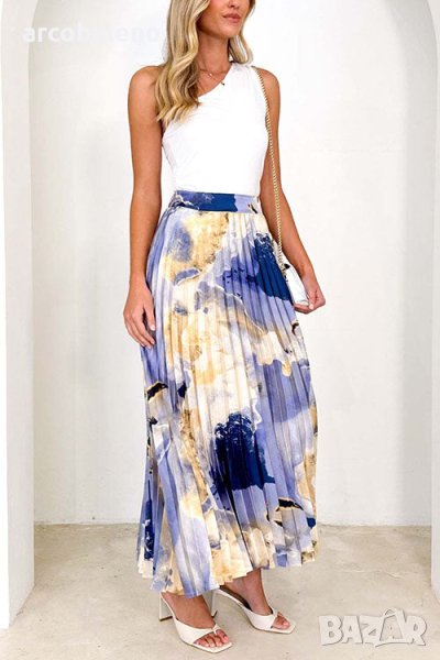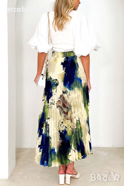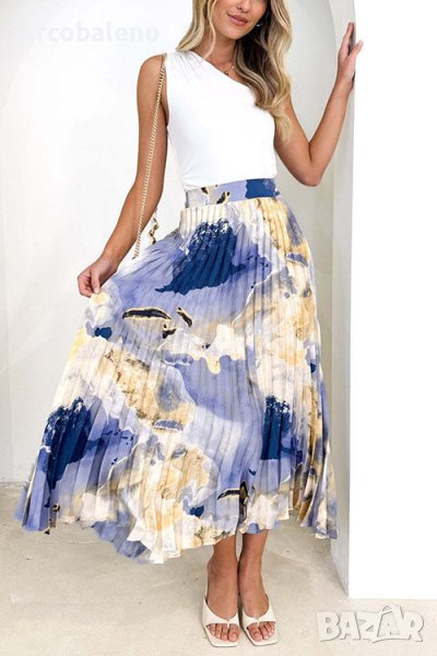 Дамска плисирана пола с щампа с А-силует, 2цвята