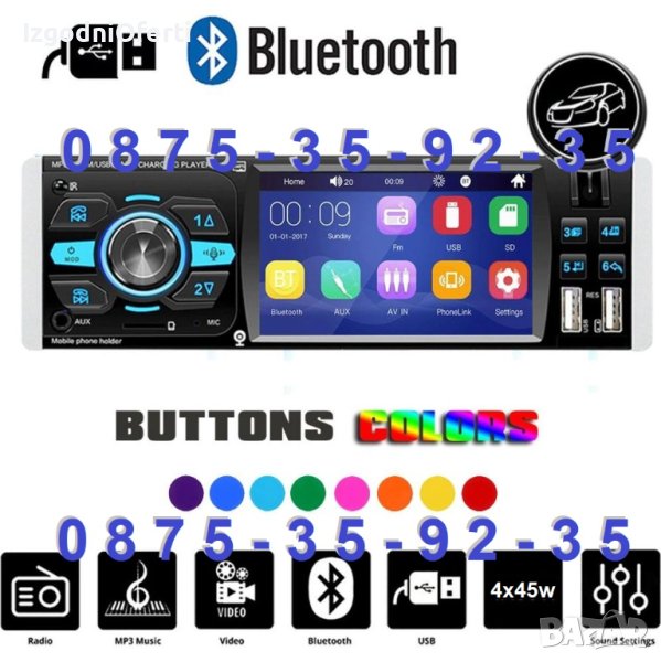 Страхотно устройство на изключително бюджетна цена! Предлага ви всичко необходимо от което се нуждаете, докато сте на път. Разполага с голям TOUCHSCREEN display, Mirror Link - който копира дисплея на телефона Ви върху дисплея на мултимедията, ВИСОКОКАЧЕСТВЕН ЗВУК И КАРТИНА, възможност за задна камера, която излиза автоматично на дисплея при включване на задна предавка, вграден микрофон и BLUETOOTH, така че вече имате Handsfree в автомобила си. КАК РАБОТИ ТОВА ХЕНДСФРИ ? Когато някой ви търси устройството прекъсва музиката и чувате говорът в говорителите на колата ви. Вие си говорите свободно без да се налага да отделяте ръцете от волана, благодарение на вграденият в устройството микрофон. Вие също може да избирате телефонни номера директно от мултимедията. Освен това устройството може да чете всички видове видео и музикални формати, има вграден радио приемник, може да сменяте цвета на подсветката на бутоните според интериора на автомобилът ви, да зареждате телефонът си през пригоденият за целта USB изход. Системата има AUX функция, USB функция, TF (SD card) функция, Bluetooth функция, FM функция и всичко това може да управлявате от IR дистанционно управление от разстояние до 10 метра.