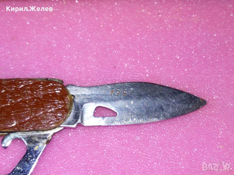 СТАРО КОМБИНИРАНО КОЛЕКЦИОНЕРСКО ДЖОБНО НОЖЧЕ с МАРКИРОВКА - 1997 На ОСТРИЕТО и КОЖЕНИ ЧИРЕНИ 43148