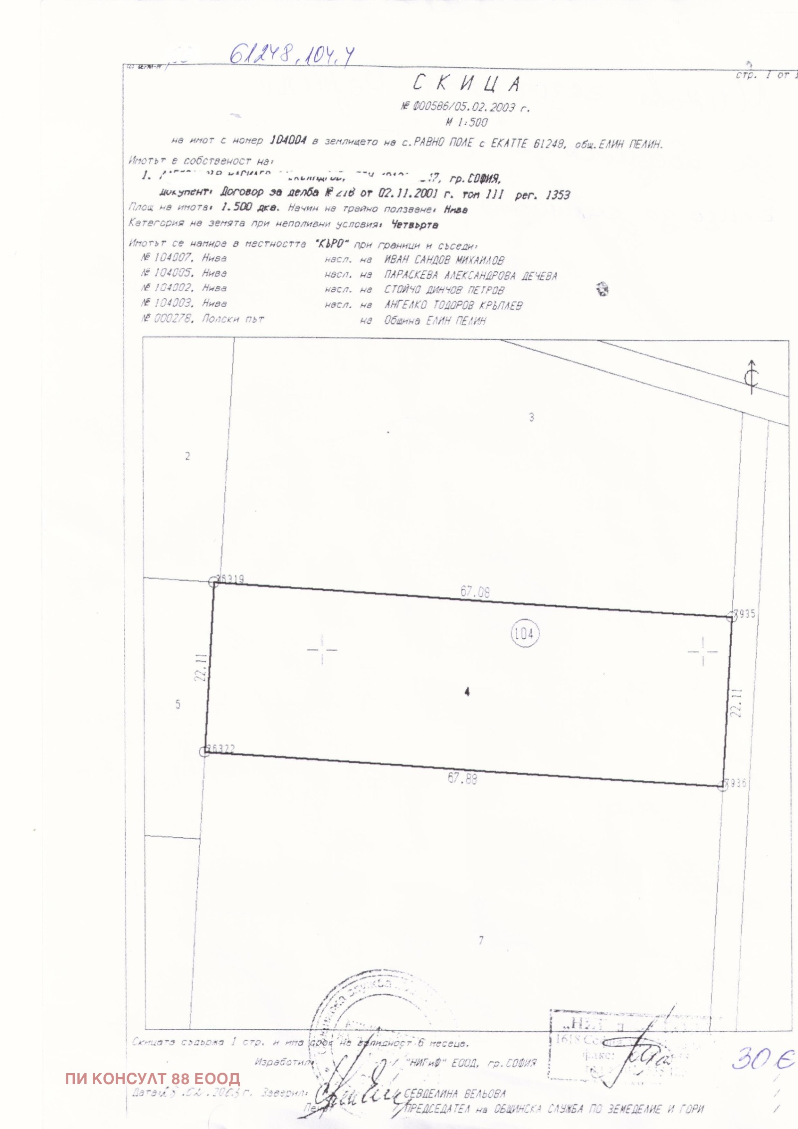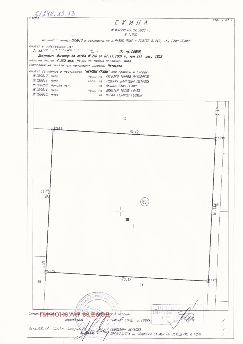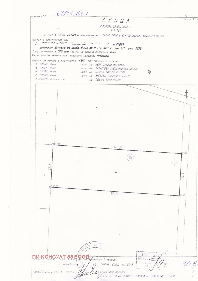Продава ПАРЦЕЛ, с. Равно поле, област София област → Обява 44020703