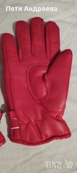 Червени скиорски ръкавици. Отгоре кожа, отвътре плетена вълнена подплата. Размер S.