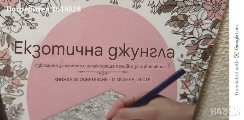 Тя ще ти помогне да релаксираш, като създаваш прекрасни картини. В нея ще откриеш 12 модела на 24 страници за оцветяване,с различни картини на екзотични животни и птици.. Ще съчетаваш хармонично линии и форми и ще развиваш творческите си способности. Изобилието от малки детайли ще те очарова и ще събуди интерес за рисуване по подобен начин с точност и внимание.