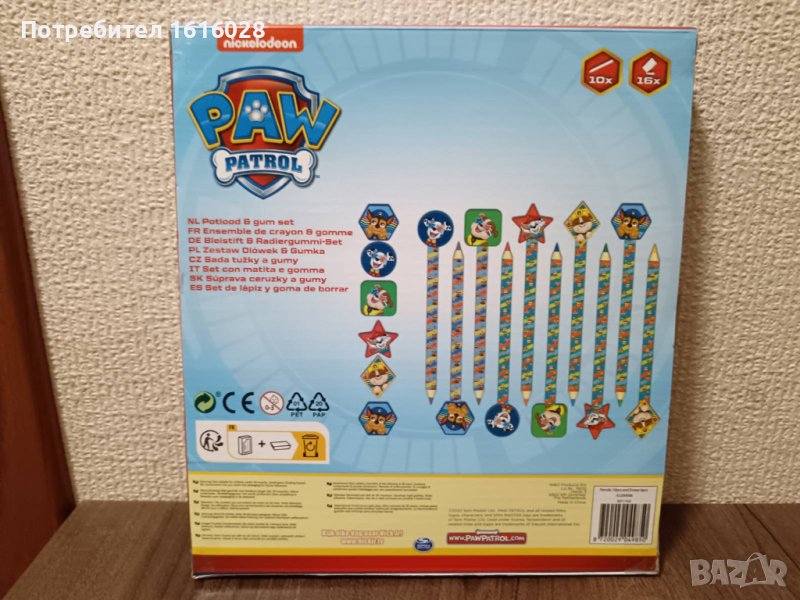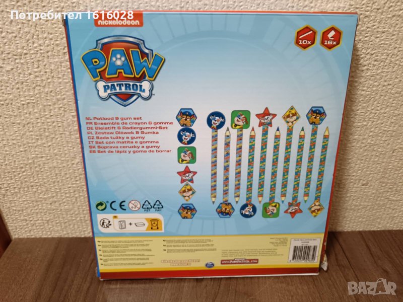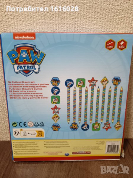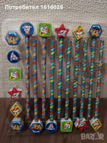 Сет от 10 цветни молива и 16 гумички на Пес Патрул. → Обява 44021084