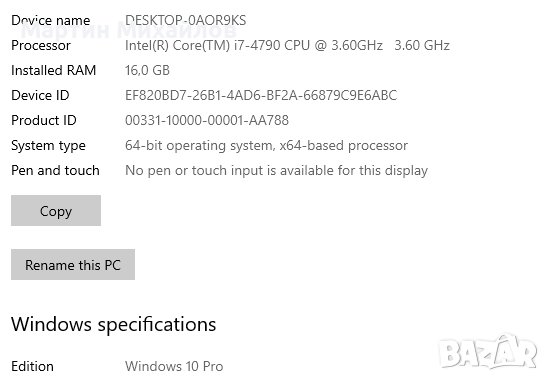 * Инсталиран Windows 10 Pro или Windows 11 Pro (по избор) + базови програми.