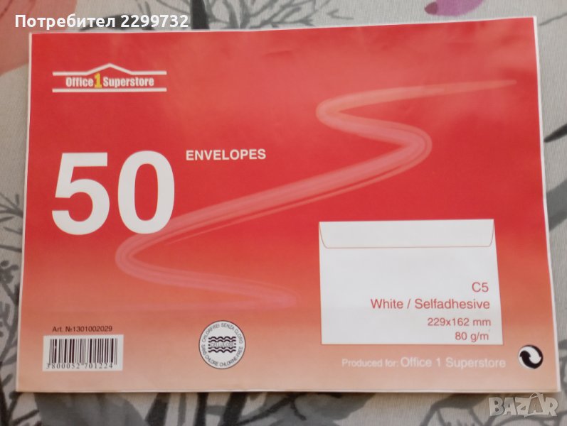Плик С5 229х162 мм ; 80 г/м; Office1; налични 37 бр. ; Самозалепващи ленти; цена за брой 0,10 €.