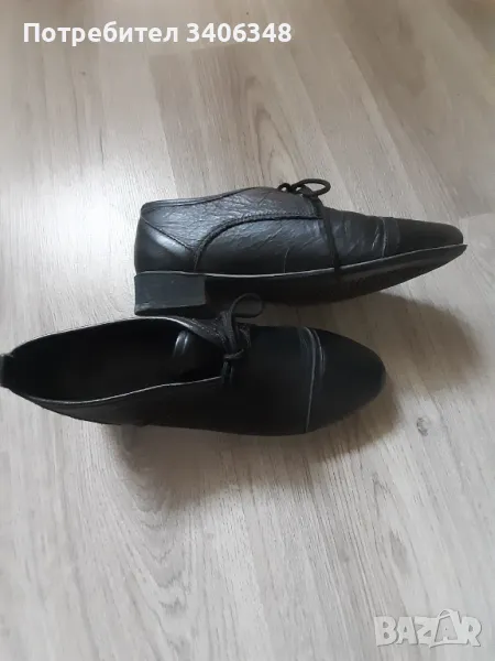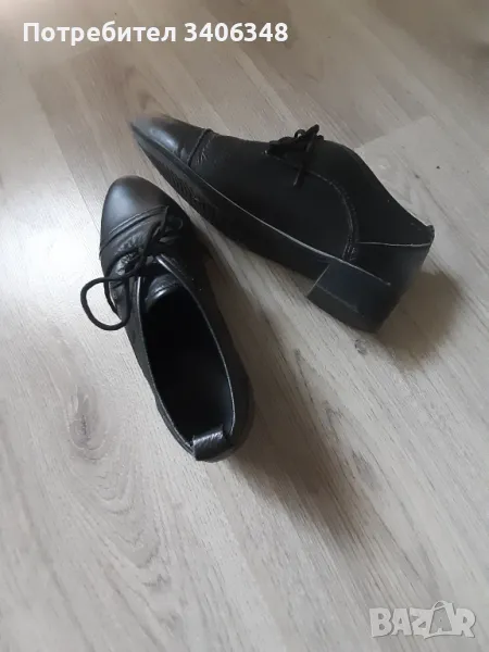 И черни ежедневни обувки с връзки. Естествена мека качествена кожа. Съвсем запазени, леки следи от употреба, без забележки. Номер 38.