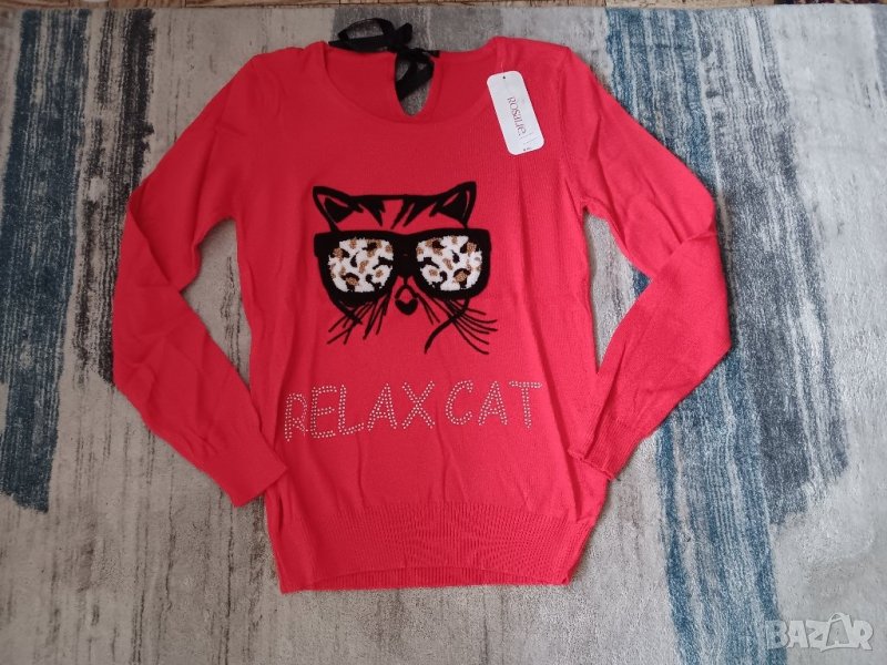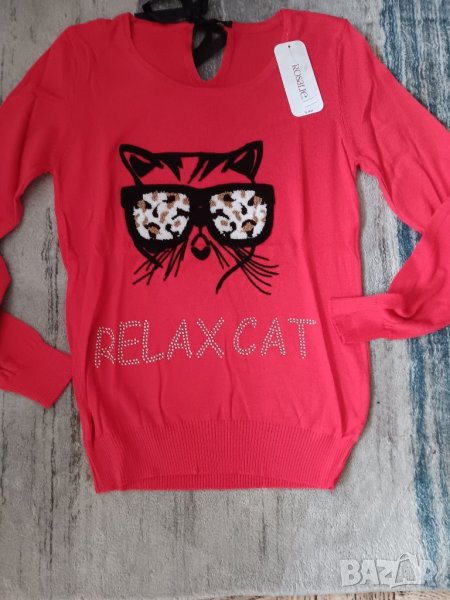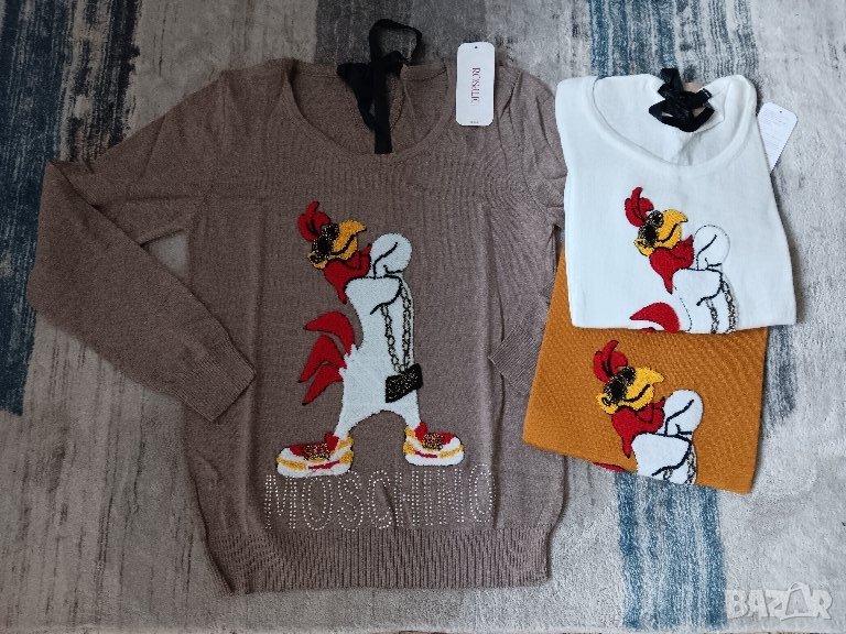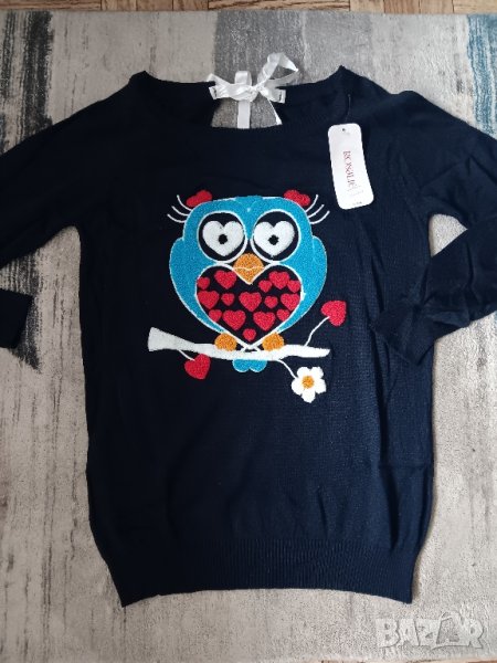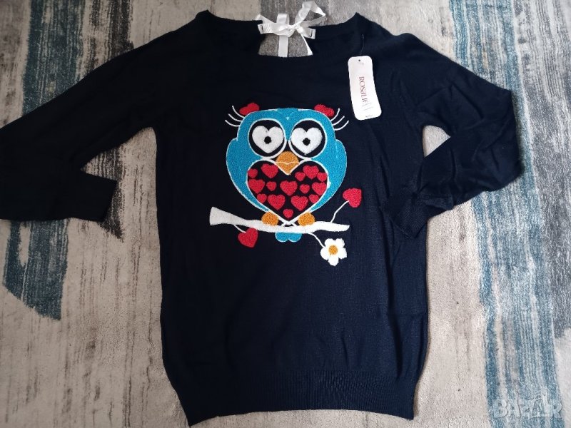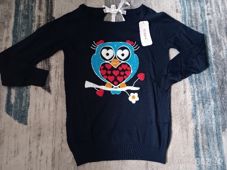 Пуловер финно плетиво с принт бухал,коте и петел в различни цветове → Обява 44031935