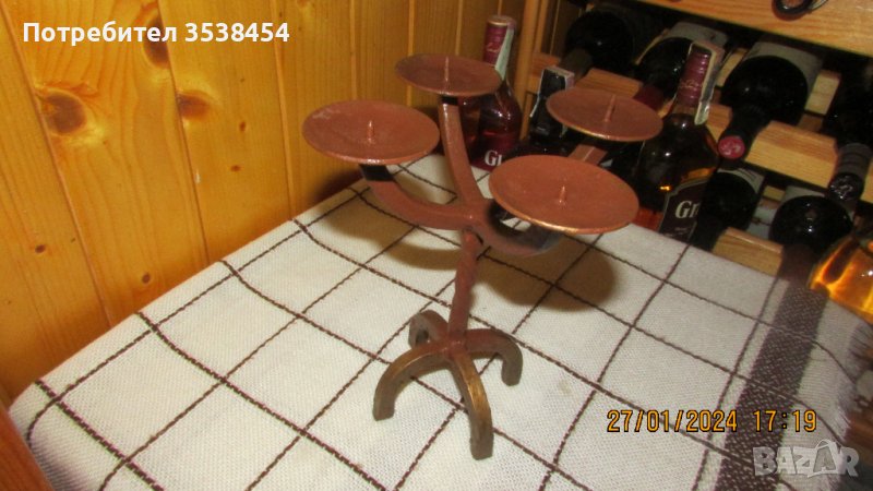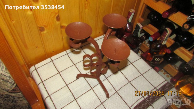 Свещниците са изработени от ковано желязо. Петицата е на 32 лв. Четворката и тройката на 25 лв.