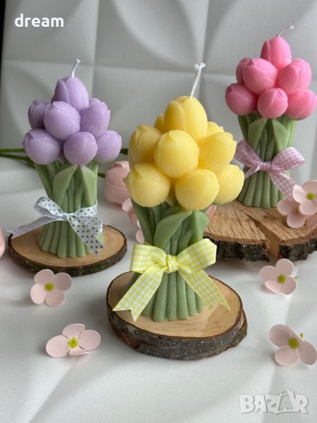 Ръчно изработени ароматни свещи “Букет Лалета “,ухаещи на пролетни цветя.