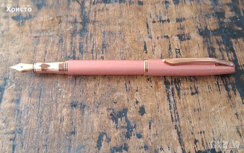 Продавам писалка Пеликан Peliкan розов металик Peliкan Rose Pink в кутия. Оригинална, метална и чисто нова. Произведена в Германия. Имам 1 брой останал. На перото има логото на Пеликан. Супер подарък за ценители. Вътре в писалката има 1 брой патронче със синьо мастило.