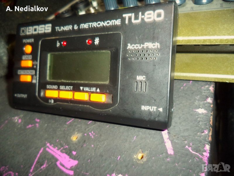 Продавам тунер + метроном модел Boss TU 80 работи с 2 батерии по 1.5 волта. Задното капаче липсва затова е залепен с лепенки.