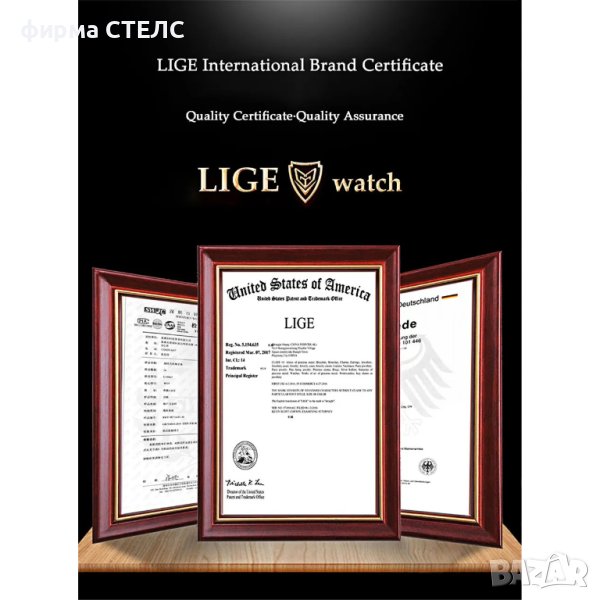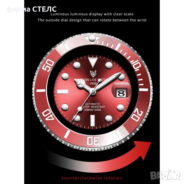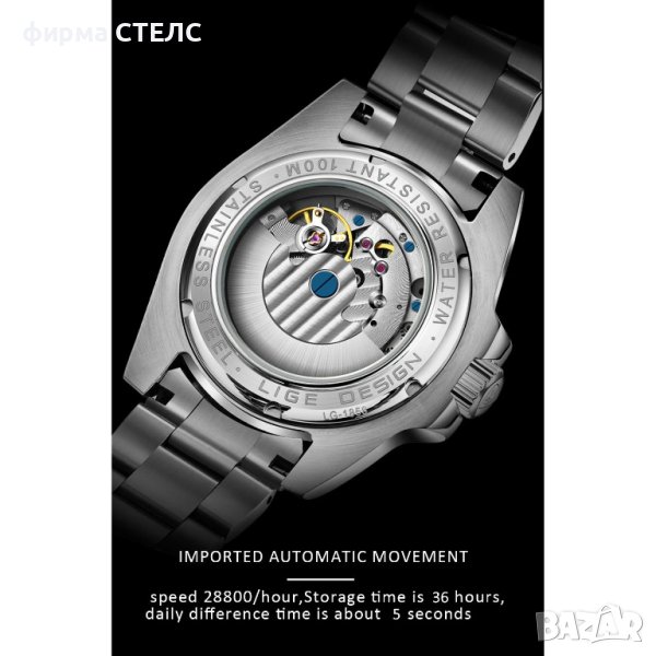 Мъжки часовник Lige Mechanical Watch, Водоустойчив, Неръждаема стомана