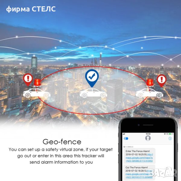 Можете да настроите виртуална зона за безопасност, ако целта ви излезе или влезе в тази област, този тракер ще ви изпрати алармена информация.