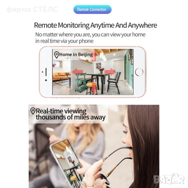 Можете да свържете безжичната си IP камера видео и звук на живо от всяка точка на света чрез мобилно приложение.