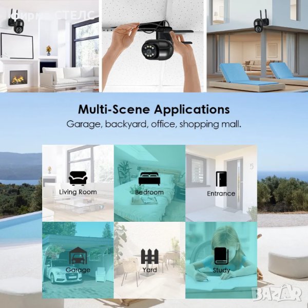 PTZ камерата използва панорамиране, накланяне и мащабиране, за да осигури както широкообхватно покритие, така и големи детайли с една камера. Използвайте iCSee APP за дистанционно управление на камерата нагоре / надолу & наляво / надясно с по-малко сляпа зона.