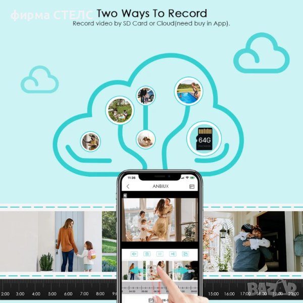 Поставете SD карта, това е пълна система за отдалечена домашна сигурност, записваща 24 * 7 видеоклипа или само събития за движение и лесно възпроизвеждане на телефонно приложение (поддръжка на 16 ~ 128G micro SD карта, картата не е включена), облачното съхранение трябва да се купи в приложението.