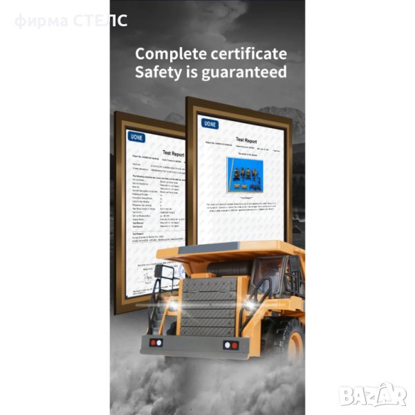 на строителния камион RC е 1:24 и е с мощен двигател. Играчката за строителни