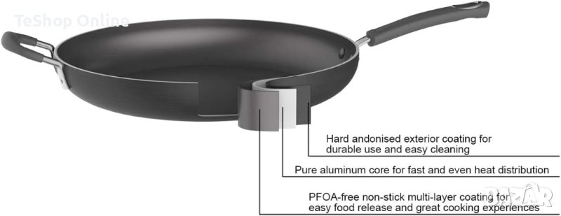 Твърд анодизиран тиган от здрав алуминий с незалепващо покритие; ANSI сертифициран и без PFOA