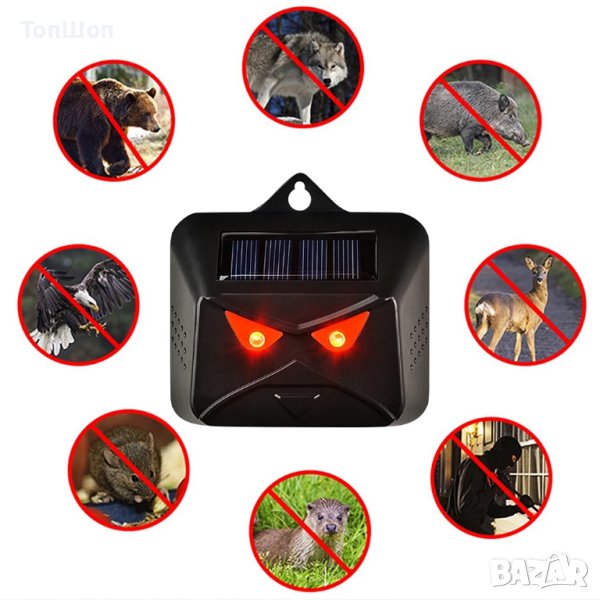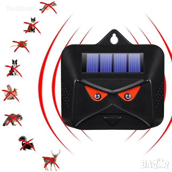 Прогонете нежеланите животни от своята градина и двор с новия соларен ултразвуков уред с фотоклетка. Той ще отблъсне животните като: котки, кучета, птици, лисици, мечки, елени, гризачи и влечуги.