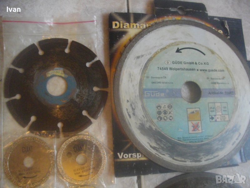 Различни дискове диамантени - диамантини и за дърво - нови и малко ползвани с размери различни - нови - ф 50,8 мм и ф 85 мм за машина електрически мини ръчен циркуляр - роторайзер и дискове размер ф 180 мм и ф 110 мм диамантини за електрическа