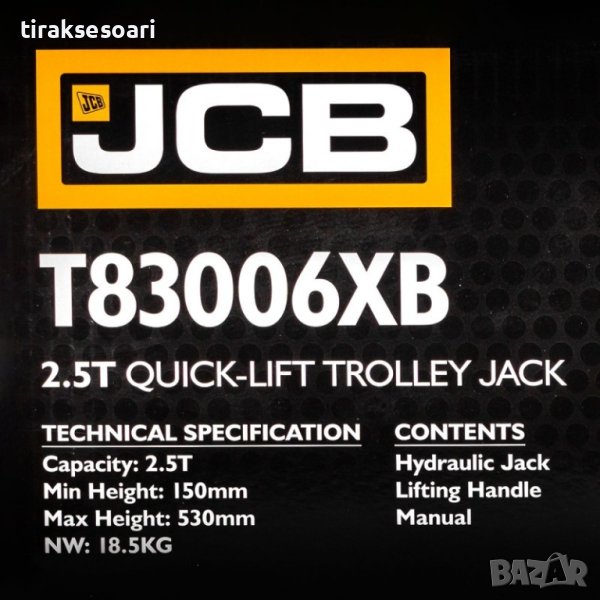 Професионален крик крокодил на марката JCB с товароподемност 2,5т , усилена конструкция , крикът има допълнителна приставка за повдигане на по-високи коли , бусове и джипове.