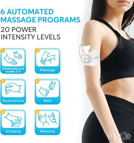 Открийте естественото, без лекарства решение за облекчаване на болката с електронната машина TENS, идеална за облекчаване на болки в ставите, гърба, коленете и други чрез импулсна мускулна стимулация. Това устройство, идеално за Свети Валентин, Деня на майката, Деня на бащата, Коледа или рождени дни, предлага безжичен, дискретен дизайн за свобода на движение и удобство. С 20 нива на интензитет и 6 режима, той е лесен за използване само с 2 бутона. Той разполага както с TENS за облекчаване на болката, така и с EMS за тонизиране на мускулите, подходящ за активни хора и тези, които водят заседнал начин на живот. Акумулаторната батерия осигурява дълготрайна употреба, което го прави идеален за дома, на работа или в движение.