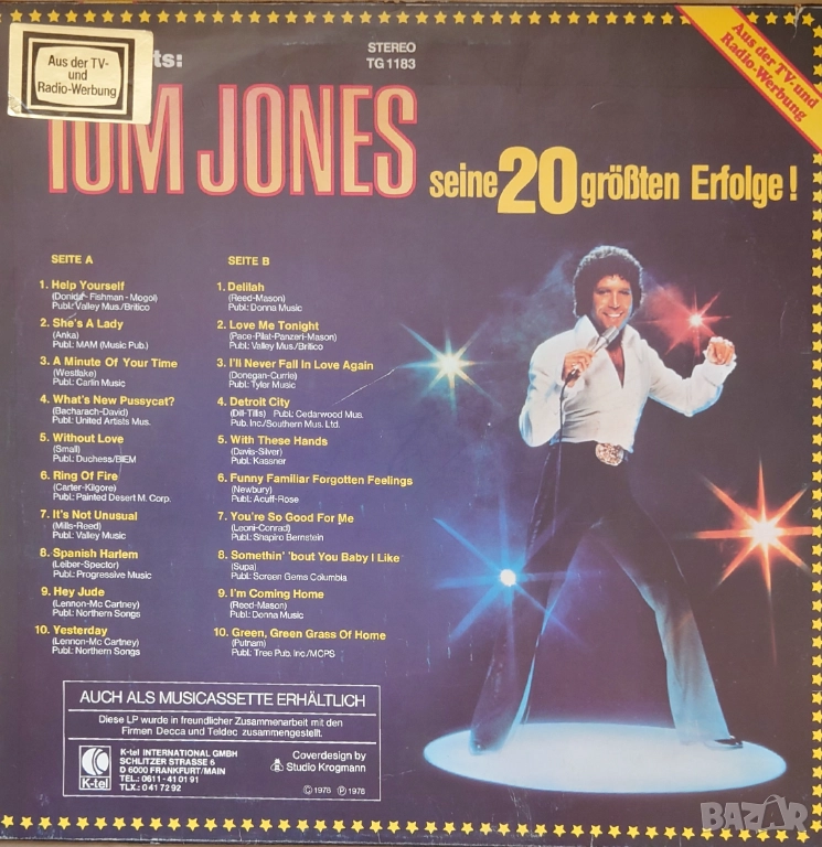 Tom Jones – Seine 20 Größten Erfolge! Germany LP в отлично състояние.