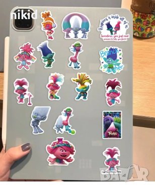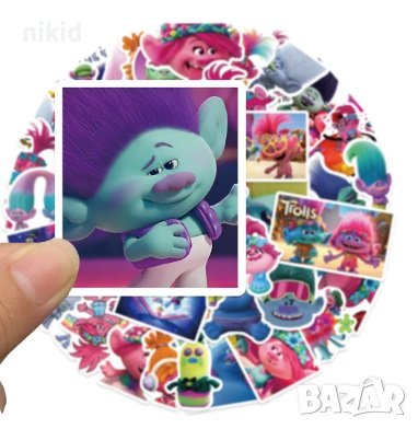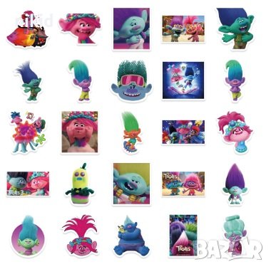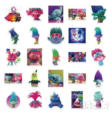 50 бр Тролчета Trolls Тролс тролчетата самозалепващи лепенки стикери за украса декор картонена торта → Обява 44054006