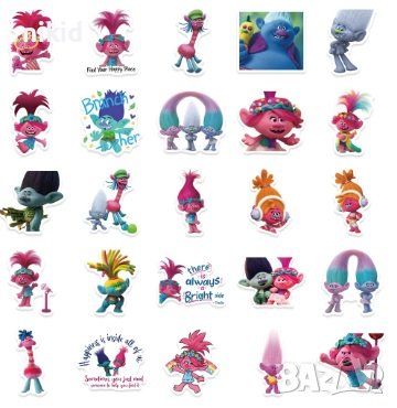 50 бр Тролчета Trolls Тролс тролчетата самозалепващи лепенки стикери за украса декор картонена торта
