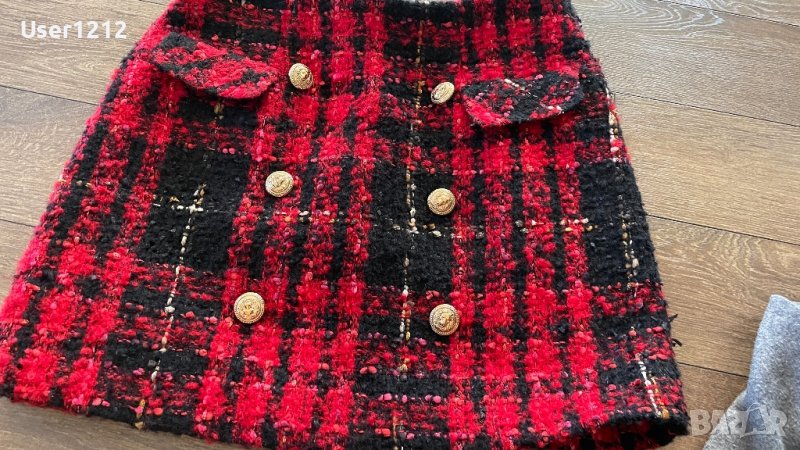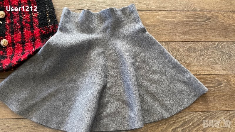 Сивата пола е на Зара -много еластична , надолу разкроен модел , както се вижда на снимките . Размерът по етикет е М . Червената пола е невероятна , от букле и златни копчета отпред . Стои прекрасно и много изискано . Размерът по етикет е Л (165-172 см ) . Цената е за брой
